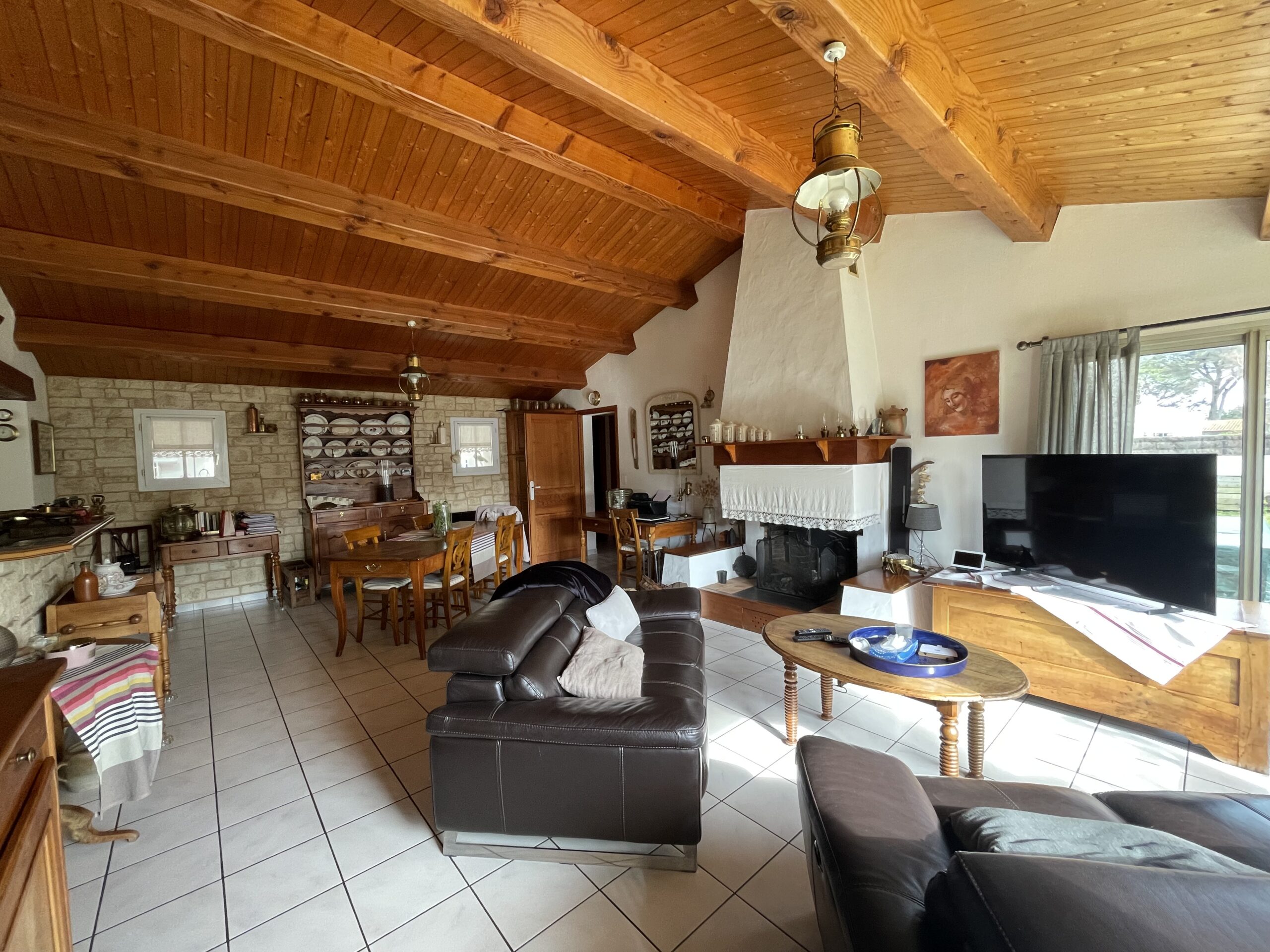 sur une pièce de vie exposée sud-ouest avec cheminée et cuisine semi-ouverte. Un cellier,