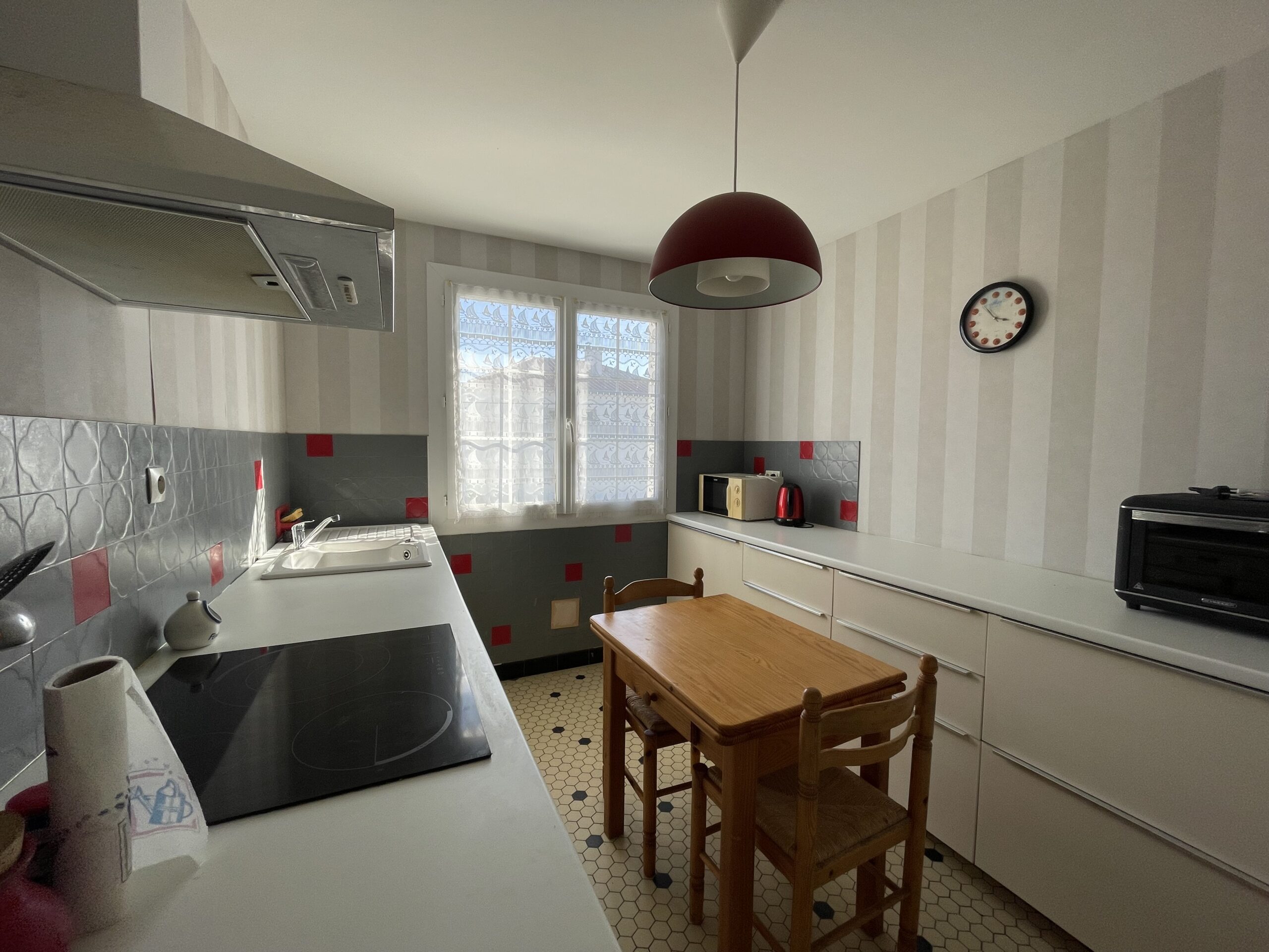 une cuisine, deux chambres, une salle d’eau et un Wc. Le sous-sol semi-enterré offre un beau volume supplémentaire