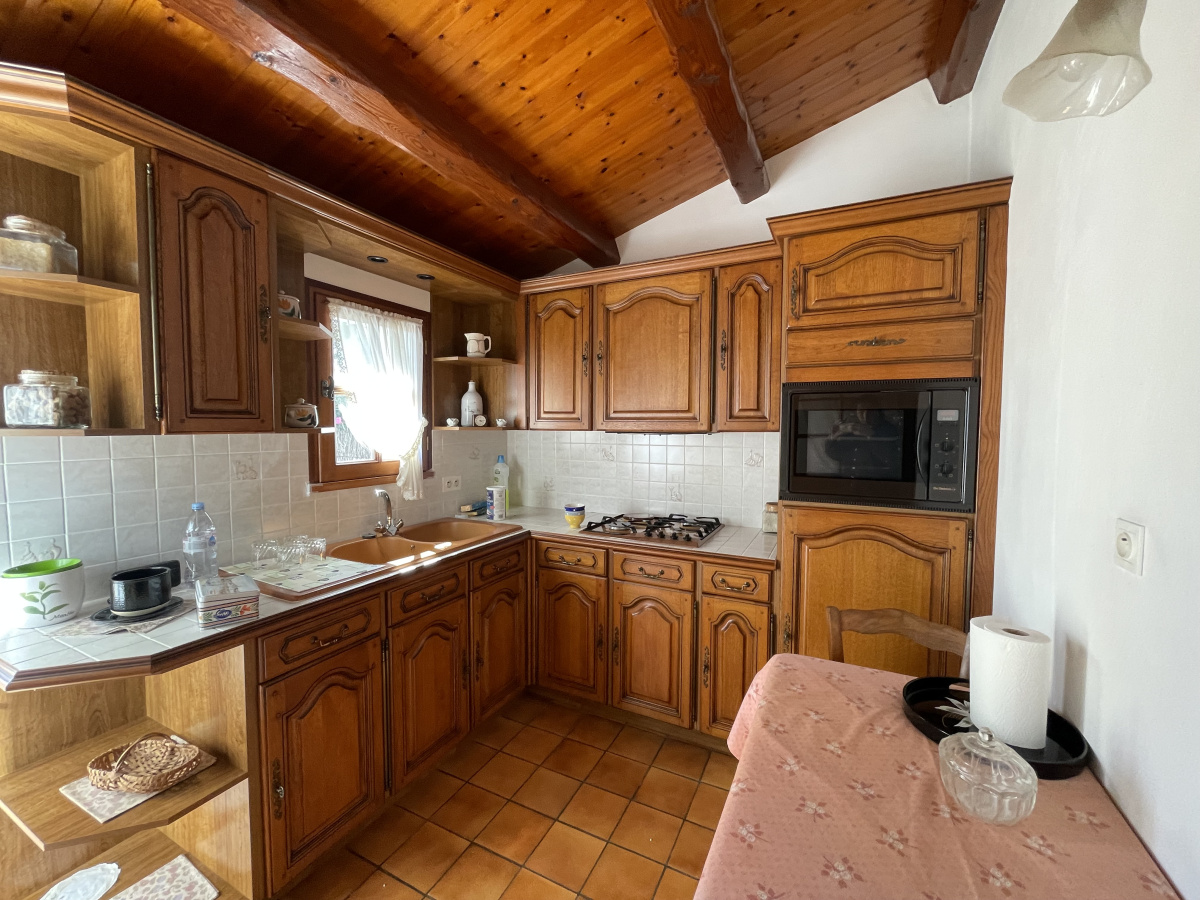 une cuisine indépendante aménagée et son cellier, deux chambres, une salle de bain, un w.c. et un garage.