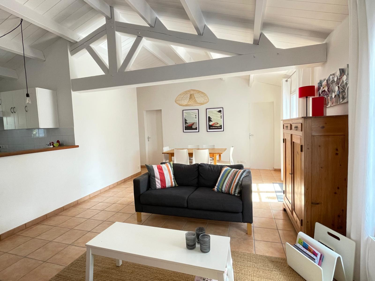 L’ensemble de la maison s’ouvre sur un jardin arboré, exposé plein sud avec terrasses et sans vis-à-vis.